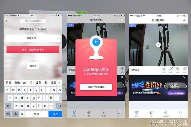 如果手机成功绑定摄像头以及摄像头正确联网后,手机会提示给当前摄像头起个名字,而后主功能界面则显示相关的摄像头的名称以及最后一次监控时候留下的截图!至此,整个摄像头的联网绑定就完成了!