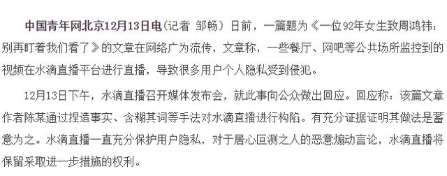 在事件发生之后,360的反应速度还是不错的,迅速召开了一场媒体发布会,就此事向公众作出回应。周鸿祎在发布会现场现身,对摄像头的赠送情况作出了解释,同时也演示了如何将摄像机内容水滴直播平台的过程。就发布会上的演示看,用户的确无法轻易将内容水滴直播上,加上水滴直播发言人张西胜的澄清,这场危机公关也达到了一定的目的。