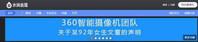 和很多直播平台不同,水滴直播并不是为了培养一系列直播,通过直播进行利益转化最终盈利的平台。与水滴直播有直接联系的,是与奇虎360旗下所推出的智能硬件——360智能摄像机。在水滴直播的PC端网页上,我们没能找到很多直播平台常见的“打赏”、“购买金币”等奖励直播的入口,与主播相关的,也就是只有“赞”和“关注”这些非盈利的褒奖。