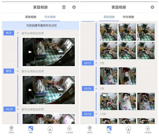 手机APP具有非常多的功能,在线监控护家自然是首要功能,其还能捕捉生活中的点滴瞬间,查看家庭相册时感到浓浓的家庭温馨感。家庭相册功能包括笑脸相册、时光相册、截图/录像等三个主要功能,这三个功能的确是一个非常温馨的功能。笑脸相册只要设置好笑脸范围,小水滴便可以通过其笑脸识别功能抓拍该区域内的笑脸,最后行程一个笑脸相册,让家的温馨随时可以回顾。