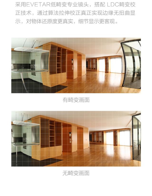 小白智能摄像机还采用EVETAR低畸变镜头,搭配LDC畸变矫正技术,通过算法拉伸矫正实现边缘无扭曲显示,对物体还原度更真实。当然,红外夜视、移动侦测等功能也是具备的。