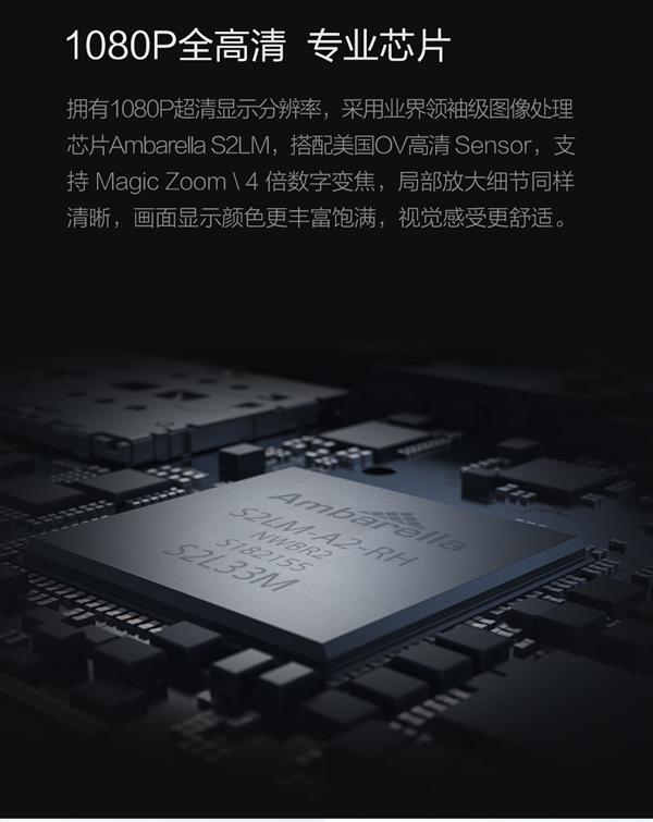 它还采用Ambarella S2LM图像处理芯片,支持1080P全高清录制,具备F/1.8大光圈及6片全玻璃镜组,支持Magic Zoom 4倍数字变焦。