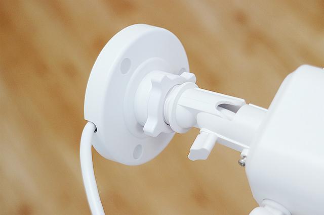 值得一提的是,360在产品的细化表现方面真的是体贴入微。为了方便用户安装,这款产品的电源适配器线材采用了加长设计,在很大程度上降低了电路改造的难题,而且360还附送了三颗膨胀螺丝钉,并提供了一个专供打孔用的贴纸,我们可以参照贴纸的指示点直接进行开孔,不需要再对安装孔位进行测量预判。并且机身与底座的连接处采用了180度可调设计,通过机械化固定能够实现高强度的机身稳定,加上其支持正向或反向安装,所以无论怎么装,图像都能够实现正常影像还原。