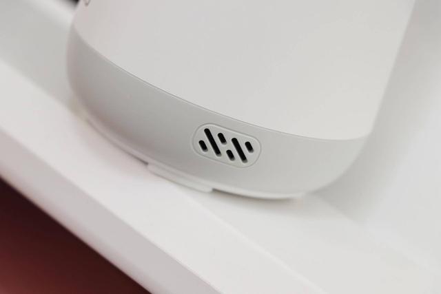 为了让用户语音通话时听得更清楚,在360智能摄像机云台5P 触联2K版机身两侧,我们还能看到两个扬声器开孔。
