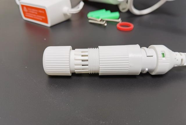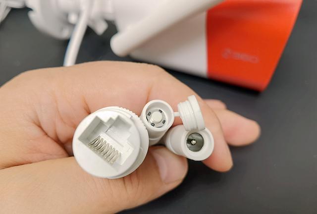 电源接口处,除了DC3.5mm供电口和网线以外,还多出了一个复位键,这使得它除了支持WIFI连接还可以支持网线连接,让信号传输更快更稳定。并且接口的一拖三线头粗且耐用,还都有防水设计,网口有尾线防水套装、电源双口安装时比较紧密、复位键属于内隐设计,外部有密封盖。