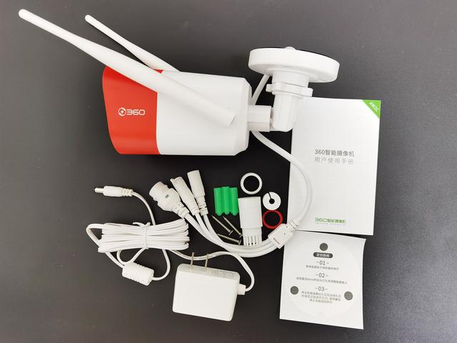 最后来晒一下360智能摄像机红色警戒高配版的全家福,如上图我们可以看到摄像机主机、电源适配器、密封胶管套件包、安装螺丝、产品说明书、上墙定位贴纸等各种你想不到的配件它都一一齐全。