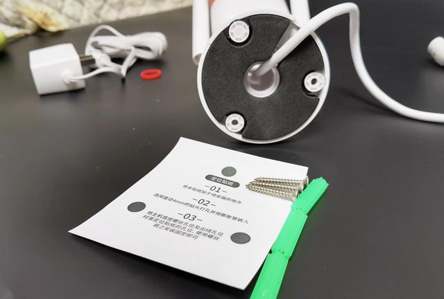 从产品本身来看,360智能摄像机红色警戒高配版搭配了底座,可通过螺丝钉固定在墙体、木板等容易打孔的物体上面。首先将定位贴纸贴在要安装的地方,然后用直径4mm的钻头在指定位置打三个孔洞,并将膨胀管嵌进去。然后将将像机的底座螺纹孔位和出线孔位对准贴纸打出来的孔洞,用螺丝安装固定好就可以了。由于本身的两根天线,支持无线,所以笔者基本不用为怎么布线弄的头大,