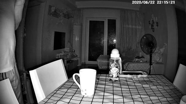 另外360智能摄像机红色警戒高配版的红外夜视功能,可以选择自动切换、一直打开或者一直关闭,通过上图我们也可以看到其夜视效果也非常不错。