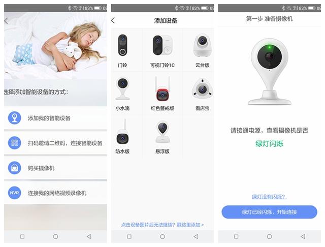 添加设备只需要选择类型,比如这次就是小水滴,然后按照提示,进行就可以了。360的设置安装非常人性化,摄像头和手机都会有语音提示,提示相应的动作,即使不是懂技术的人,也可以方便的添加。