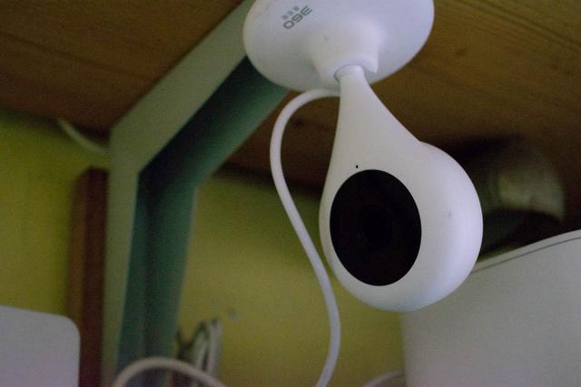 360小水滴摄像头的底座是磁吸的,所以,在家里安装的时候,会有更多的选择,比如就可以这样悬挂在金属支架的下方,获得更好的视角。