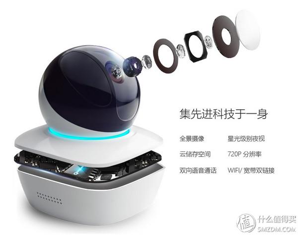 接入网络后,指示灯呈蓝色,这一圈灯光给摄像头添色不少,当然也可以设置成关闭