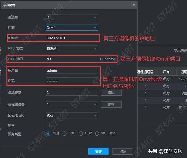 前提是摄像机支持onvif协议,并且在相机中配置好相关协议设置后,可以在主机上采用onvif协议添加。