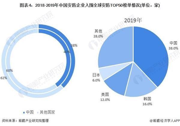 2019年在全球安防TOP50榜单中,中国安防企业占了19家(包括台湾5家),占据38%的比重,韩国入围8家,美国入围6家,日本3家,而2018年中国入围的安防企业为20家(其中10家为台湾企业),可见中国安防的强大,尤其2019年国内安防企业持续向好,实力越来越强。