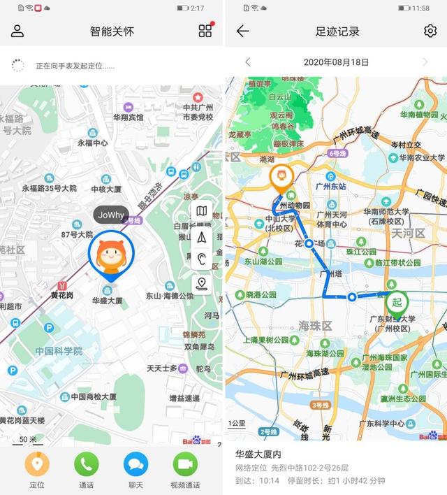此外家长也能通过手机APP随时查看较为详细的行动轨迹信息,掌握孩子动向。