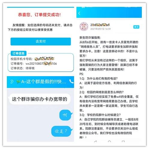 家住燕都的小刘(化名)今年高中毕业,考入了南京理工大学。某日,小刘接到一个电话,对方自称是南京理工大学的工作人员,要他加入“新生QQ群”。小刘按要求照做了,奇怪的是,群内200多人都被禁言,只有管理者发布的办理手机卡的信息和一个二维码,小刘虽有疑虑,但觉得入学之后也是要办理手机卡的,于是就扫描二维码,进入办理移动手机卡的链接,在填写个人信息、上传身份证照片并支付了100元后,群内有人添加小刘QQ好友,告知他这个群是假的,将其拽入了另一个拥有1500人的新生群。在后进入的这个群内,很多人都说最近冒充学校工作人员,要求新生办理手机卡的事件高发,频频有人被骗。