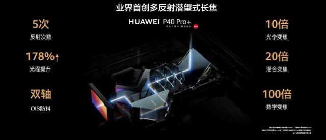 P40 Pro+则搭载了多棱镜潜望式长焦摄像头,内含两枚光学三棱镜,镜头长度两次折叠,是全球首款10倍光学变焦手机,此外还能实现20倍混合变焦、100倍超远数字变焦,变焦王者,全焦段超清。