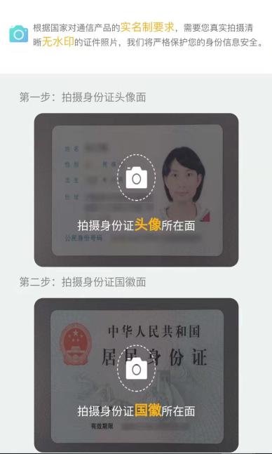 第四步:开始身份验证,需要拍摄个人身份证正反面和进行人脸认证。(收到卡之后需要进行视频认证,视频认证和人脸认证需为同一人)