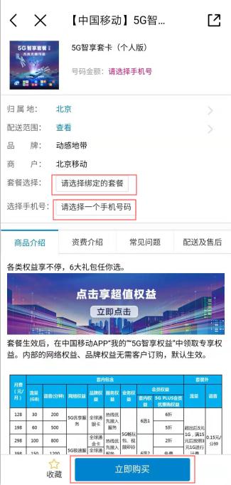 以"中国移动"为例,给大家示范一下5G手机卡购买的具体操作流程: