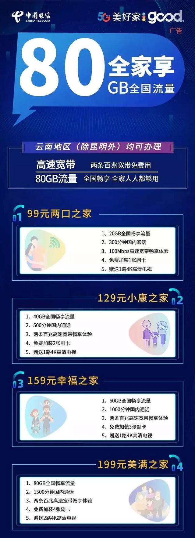 最高80GB全国流量 1500分钟国内通话