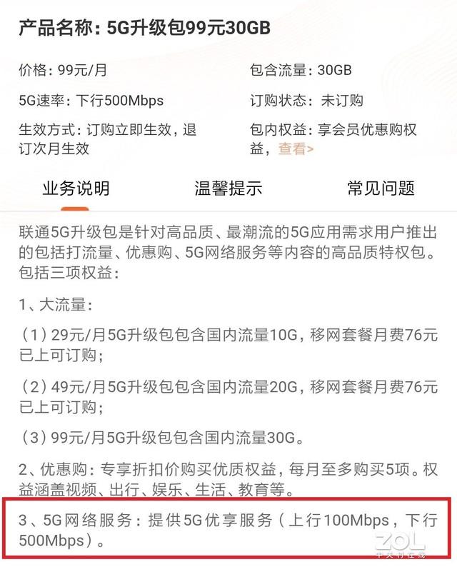 以联通为例,订购5G流量升级包后,会在5G覆盖之处优先使用5G网络,不过网速被限定在500Mbps。