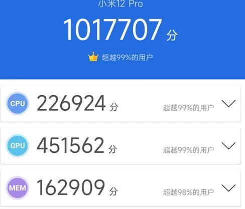 小米12 Pro搭载的全新一代骁龙8 Gen 1处理器,采用目前最先进的4nm制程,满血LPDDR5,满血UFS3.1。以及还有低级的散热堆料。得益于CPU图形的性能全面的飞跃,以及首次搭载动态性能调度技术,极限游戏性能可以大幅度的提升,跑分也是轻松突破百万。