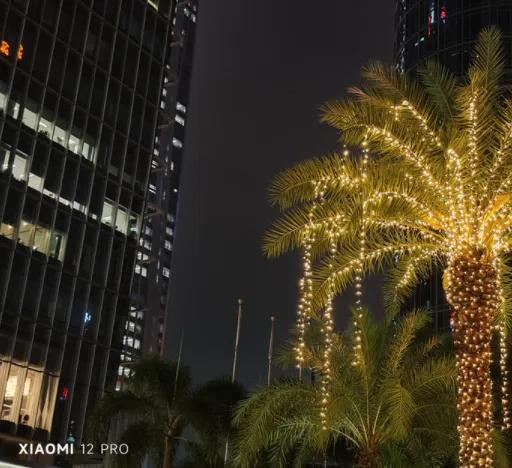 用小米12Pro拍照,给我的感觉就是,光充足的情况下,妥妥的安卓第一梯队,画面清晰,成像的风格依旧很讨喜;再看看夜景,得益于强大的算法,天空纯净度很高,树叶和楼房等细节处理的很不错: