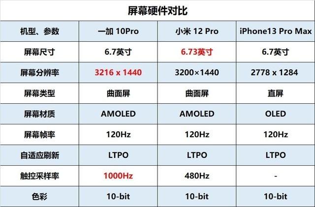 通过对三款手机屏幕硬件方面的对比,我们不难看出一加 10Pro和小米 12 Pro都不错,屏幕拥有更高的像素。一直以来像素越多,就代表着画面越精细,同样的屏幕区域内能显示的信息也越多,所以在看电影或者是打游戏时会为大家带来不错的观感体验。此外,一加 10Pro还支持1000Hz极限触控采样率,能让大家在打游戏时的操作更加跟手,屏幕也会更加灵敏。
