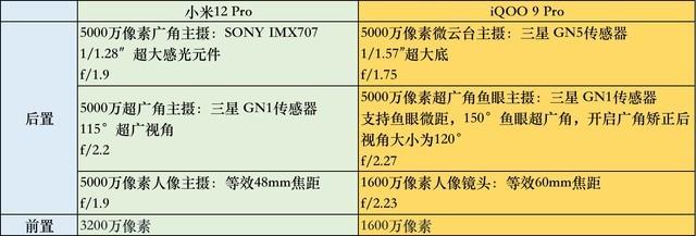 小米12 Pro vs iQOO 9 Pro 影像具体参数