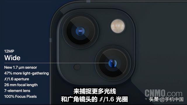 整机设计上,iPhone 13系列延续了前代iPhone 12系列的前后平面+直角边框的设计,其中iPhone 13 Mini和iPhone 13后置摄像头采用了对角线的排布方式,整机依旧是Apple独家的超晶瓷面板+航空级铝金属边框的经典组合;iPhone 13 Pro和iPhone 13 Pro Max的机身边框则是从手感到光泽都同样令人着迷的手术级别不锈钢边框,相机镜头为蓝宝石镜面。