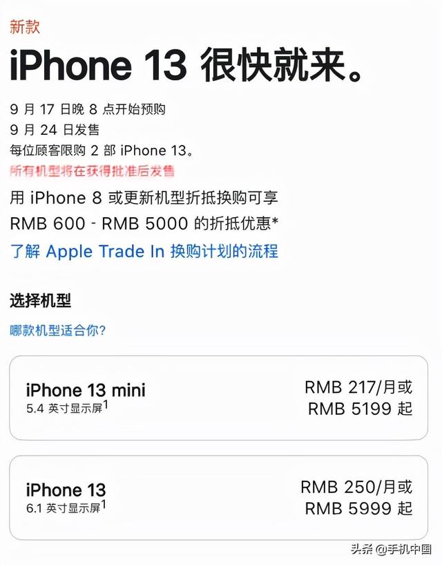 iPhone 13系列的国行价格目前已经出炉,经过对比,iPhone 13 mini 和 iPhone 13 本次将会带来重大优惠, 较iPhone 12 降价800元。若加入换购计划,最低可以以人民币3199元的价格购买一台新的iPhone 13,24期免息每个月只需267元起。