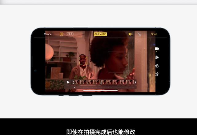 有了 A15 的加持,让 iPhone 13 与 13Pro 系列的「图像计算」能力更甚。在影像上,带来了「电影效果模式」,它模拟了电影风格的视频,在拍摄时就记录了景深信息,可以根绝脸部、眼睛来预判主体的动作以调节焦点。