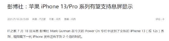 屏幕上,iPhone 13系列也将得到更新。