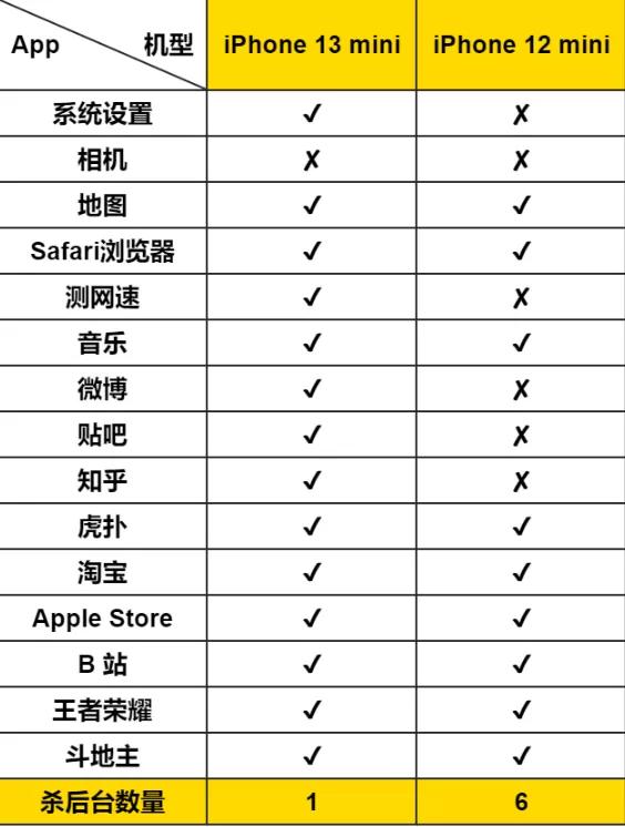 13 mini 后台保留情况明显优于 12 mini,推测原因大概率是系统版本不同造成的~