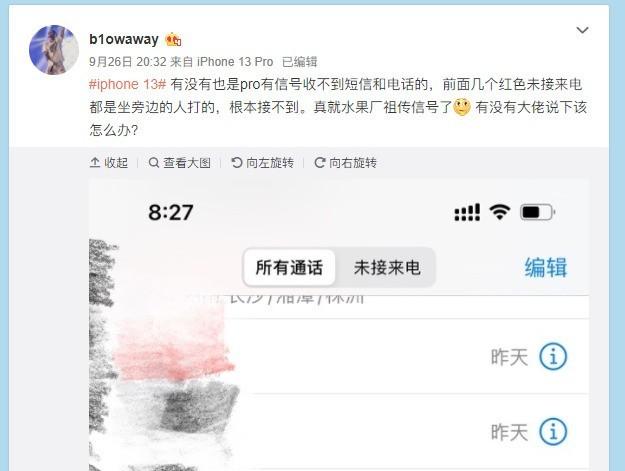 当然,也有网友表示iPhone 13系列的信号要比12更好。这个跟手机的软件适配、测试环境、运营商覆盖等因素都有关系。但基本可以确定的是,iPhone 13系列的信号的确不太行。而且还存在手机显示有信号,无法接到电话短信的情况:“有没有也是pro有信号收不到短信和电话的,前面几个红色未接来电都是坐旁边的人打的,根本接不到。”