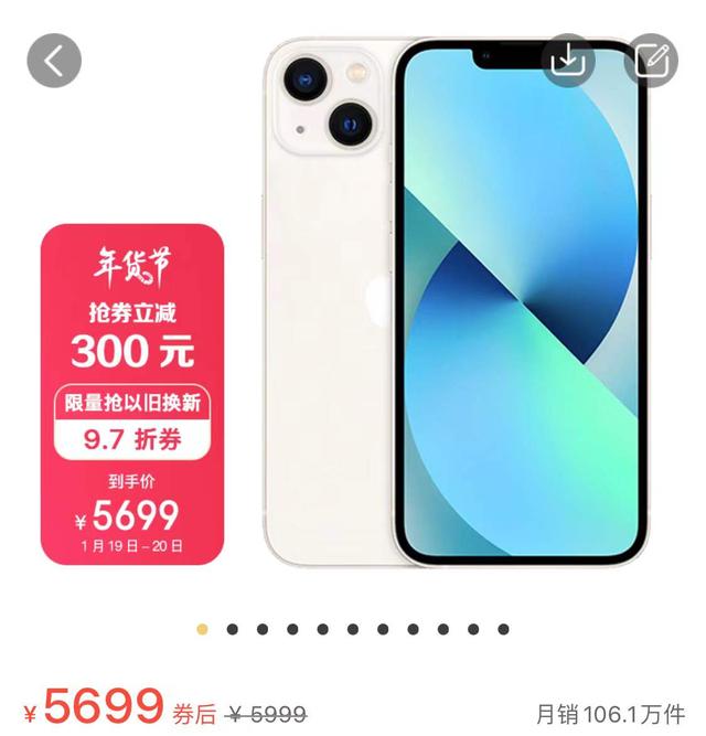 第一点不难理解,春节临近了,换手机的热潮也被掀起,大家肯定热衷于年前换新机,让自己过个好年。iPhone 13在这个时候也恰逢降价。目前优惠大概在300元左右,128GB的实际到手价5699元。