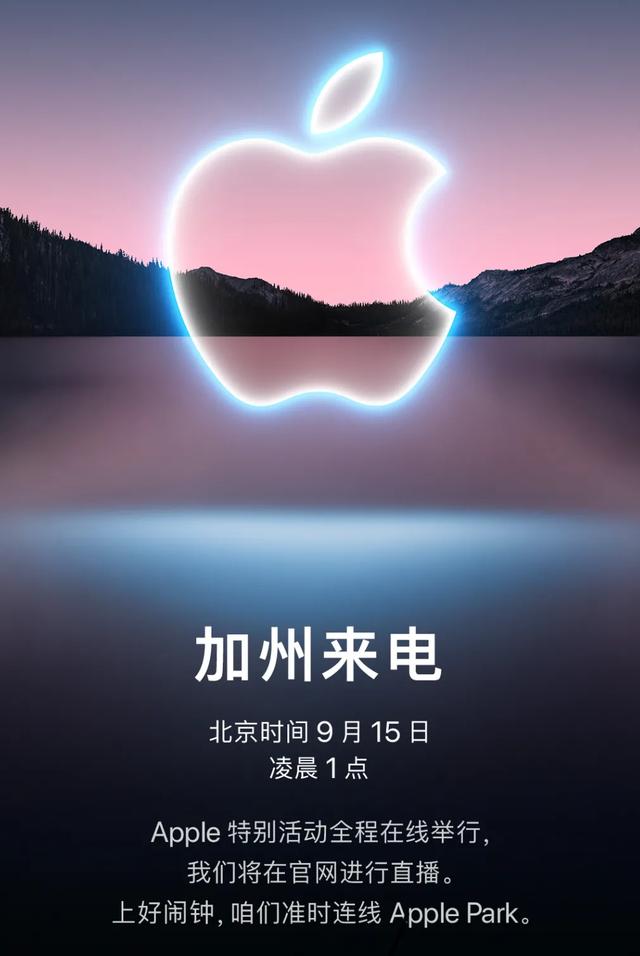 苹果官方正式公布将于 9 月 15 日凌晨 1 点(北京时间)举办 Apple 特别活动。