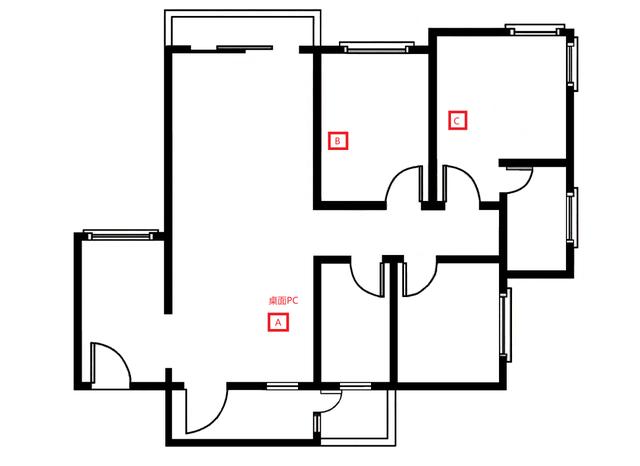 我们选择的测试场地为室内面积接近120平方米的三居室,小米路由器AX6000与一台PC建立有线连接(理论传输速度为2.5Gbps)和5GHz无线连接(理论传输速度为2.4Gbps),另外一台笔记本电脑则连接这款路由器的5GHz信号(理论传输速度为2.4Gbps)在3个测试点之间转换,并用以测试5GHz频段下的无线传输速率。