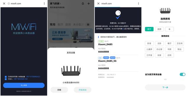 介绍完产品外观与功能,咱们再来看下实际使用的情况如何。小米路由器AX6000和光猫连接之后,打开米家APP就能自动被检索到。通过傻瓜式的下一步操作,输入设定的密码即可轻松配置绑定成功。