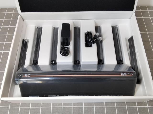 拆开包装,配件也相对简单。除了主机之外还有电源适配器和一根CAT 5E网线。