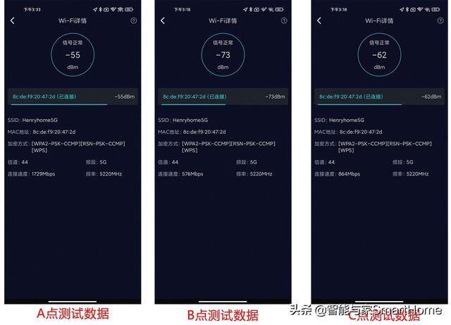 从上述结果可以看到即便距离AX6000最远,隔三面墙的B点也有相对不错的信号强度,连接速度达到576Mbps,完全能够满足日常网页浏览的速度需求。如果你是多层户型也无需担心,AX6000支持小米Mesh组网,通过多台AX6000或者AX3600、AX1800等组成Mesh网络,能让网络信号完全能够覆盖全屋所有空间,让无线移动设备能够自由在多台路由器之间无缝漫游,即便一边从地下室走到三楼一边玩游戏时也不会有卡顿现象。