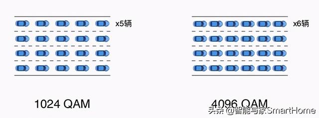 当然,AX6000的WiFi 6增强版增强不仅仅是指可以同时开启4×4和160Hz,还有源自高通的4K QAM技术。4K QAM技术简单来说,就是能够可以将WiFi 6的1024 QAM提升至4096 QAM,让同时间能够传输的数据量增加20%。举例来说就是这项技术能在不扩展车道的前提下,让四车道上的车速更快,车辆密度更高。不过,4K QAM技术只能支持到两条数据流,也就是说最多只能到2×2 MIMO,理论传输值最高能到1441MBps×2=2882MBps。