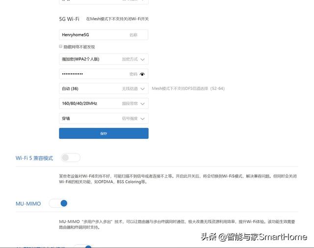 因此WiFi 6E诞生了,它相比WiFi 6多出的这个“E”是指的“Extended”,也就是扩展的意思。扩展主要指在原有的WiFi 6的2.4GHz和5GHz频段之外增加了一个新的频段:6GHz频段。换句话来说就是WiFi 6E无线路由器是支持2.4GHz、5GHz和6GHz三频的。多一个频段自然就能解决前面说的频道拥塞的问题,老旧设备和对网络要求不高的设备可以连接2.4GHz和5GHz频段,而对网络要求高的设备可以连接到新的频段6GHz频段。但是,目前我们国家尚未开放6GHz频道给民用市场,而且在AX6000的设置里面看到的依然是2.4GHz和5GHz频段,所以AX6000其实并不支持WiFi 6E技术的。