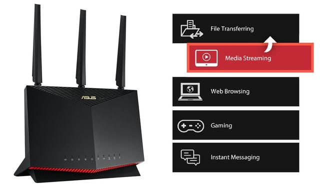 可以说华硕路由器一直都是路由器品牌的标杆,而这款华硕AX86U也华硕品牌目前配有2.5G以太网口最便宜的wifi6路由器产品。RT-AX86U在配置上还是非常给力,采用了博通四核1.8GHz的CPU;1G DDR3+256M闪存组合;满血WiFi6 4*4 160MHz;双USB 3.0接口;2.5Gbps网络接口,硬件配置上几乎没有短板。功能上华硕自家的Mesh组网、电竞手游加速以及终身免费的商业级安全防护系统AiProtection妥妥在千元以上刷新了存在感。