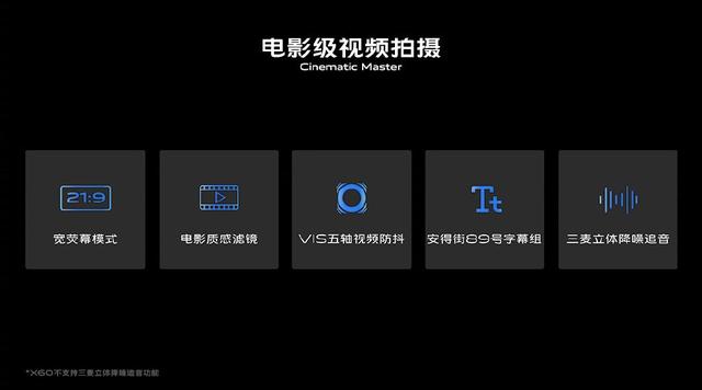 vivo X60 系列配备多种电影拍摄功能,包含 21:9 宽荧幕模式、电影质感滤镜、VIS 五轴视频防抖、安得街 89 号字幕组及三麦立体降噪追音,让每一位普通用户只用一部手机就能成为记录生活的电影大师。