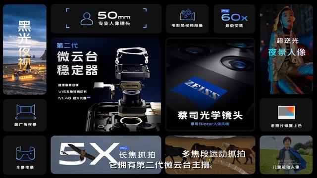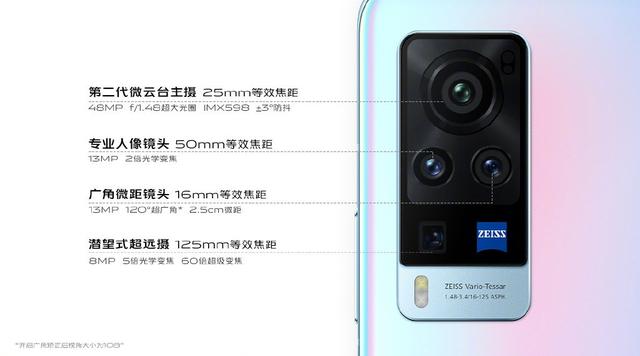 影像方面,vivo X60 系列多焦段系统均采用蔡司光学镜头,分别为 25mm 第二代微云台主摄镜头、50mm 专业人像镜头、16mm 广角微距镜头及 125mm 潜望式镜头。同时,vivo X60 Pro 主摄利用 AOA 工艺实现 f/1.48 超大光圈的微云台主摄,进光量比上一代提升 16.8%。