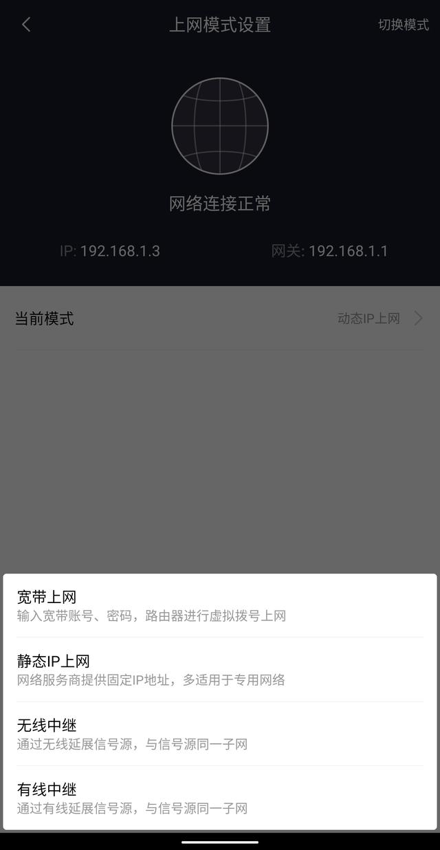 3、路由器改成拨号上网功能,以小米路由器为例,在小米WIFI应用中,“网络设置”-“上网模式设置”改为宽带上网,输入家中宽带账号密码,就都设置完成了。如果忘了密码,直接打三大运营商人工客服找回。
