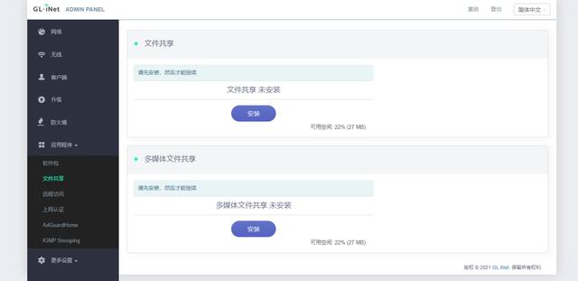 GL iNet的官方后台界面