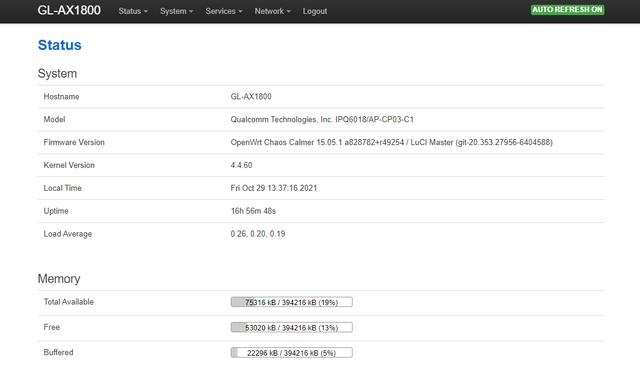 说到openwrt,不得不说说他强大的插件系统,目前这款GL-AX1800已经有些大神告知,后续lean大会给出相应的支持,很有机会放出完美适配的固件。这也是我第一时间入手这款路由器的原因,对lean大的固件真的是刚需,而且这款AX1800的openwrt,后续很有可能支持mesh组网,想想OP+WIFI6+mesh三者集成到一个路由器中,到时候肯定强大到没朋友。