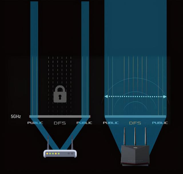 在此前“满血频宽”是否有必要的争论中,5GHz频段上160MHz的信道数量少,同时还存在跨越到动态频率选择(DFS)的问题是一个焦点。DFS是指城市中有很多天气雷达,这些雷达的频段也在5GHz。因此在使用DFS信道时,如果检测到雷达就要进行规避,而且信道有一段时间不能使用。不过在华硕的产品上,这一问题得以解决。以华硕RT-AX86U为例,其支持的DFS信道,已经能够提供额外的15个信道(国内开放4个),从而能够有效避免使用过程中出现的信号干扰及带宽容量不够用问题。