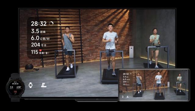 智能穿戴设备也可以和米家的一系列产品互动,比如米家跑步机,两者进行互联,还能在电视上直观展示当前的运动数据。